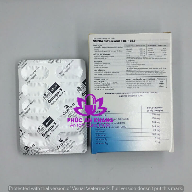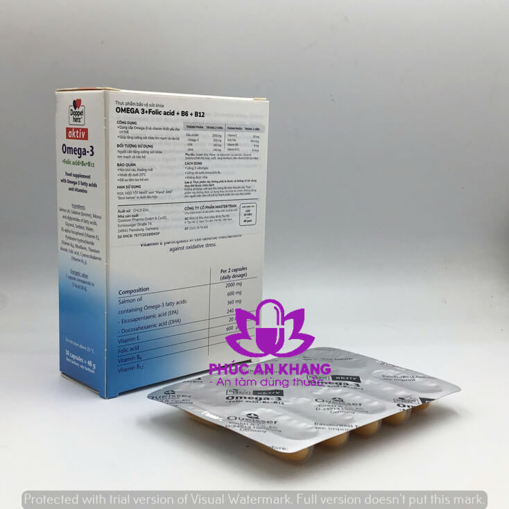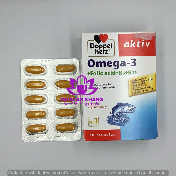 Thuốc Omega-3 + Folic acid + B6 +B12 Doppelherz Aktiv Thực phẩm bảo vệ sức khỏe, cung cấp Omega-3 và các dưỡng chất thiết yếu cho cơ thể.
